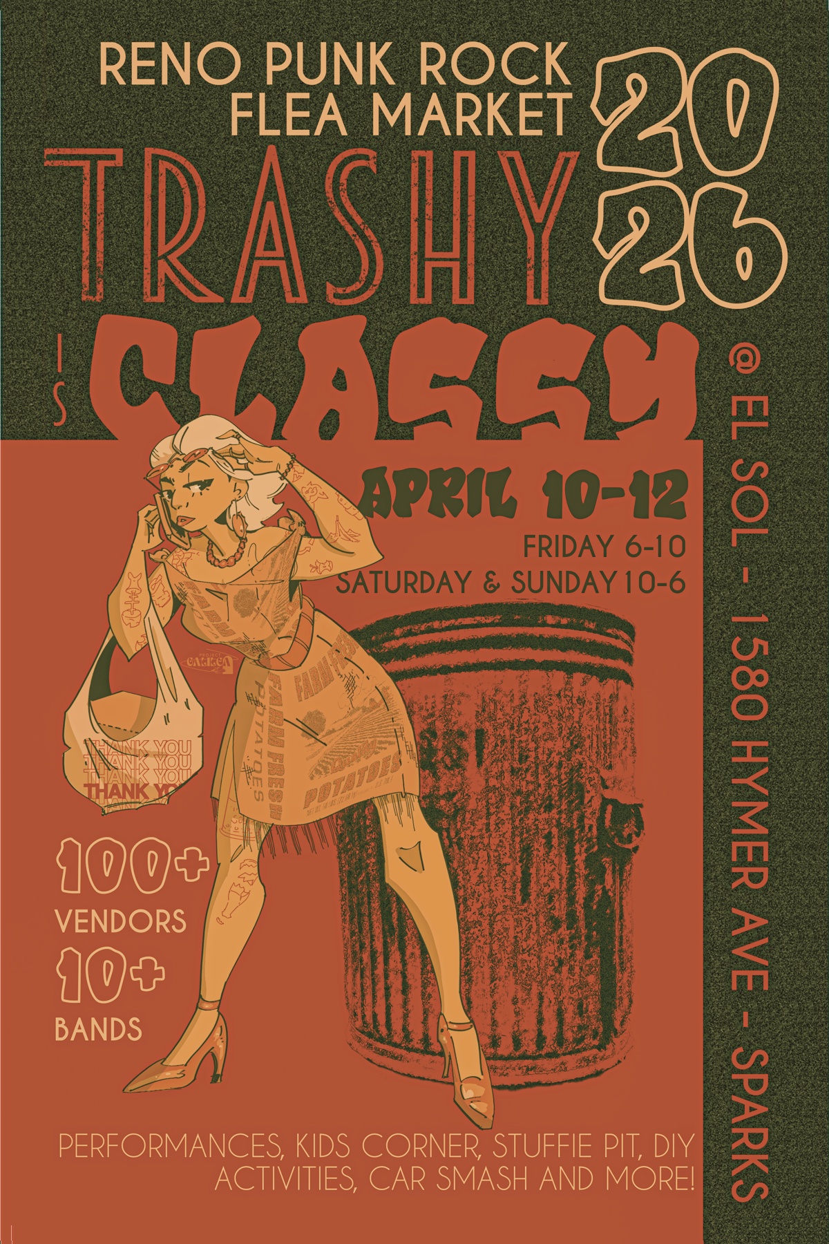 The Reno Punk Rock Flea Market is a weekend party with 10+ bands (local & traveling) and 60+ vendors who are artists, activists, non-profits and makers. We smash cars, make stuff, connect with like-minded folks, drink beer and have a pretty great time. Despite the constant loud music and car smashing, we are family-friendly! (If you’re the sort of family that likes punk rock and disrupting the status quo). We also have an interactive kiddo section complete with Drag Story Time with Vertigo!